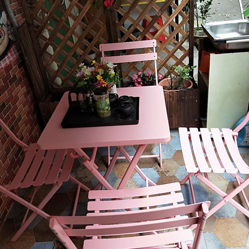 Nordic Balcony Table And Chairs Three Sets Outdoor Patio Iron Art Terrace Fold small table minimalist Milk Tea Shop Café