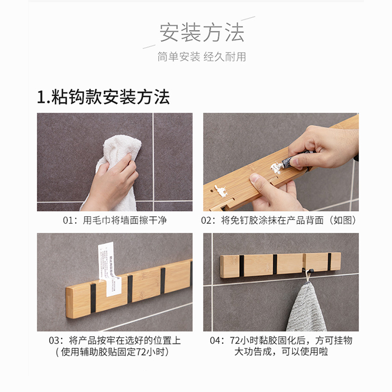 No punching bedroom door back hook wall hanging coat rack solid wood foldable coat hook powder room wall hanger