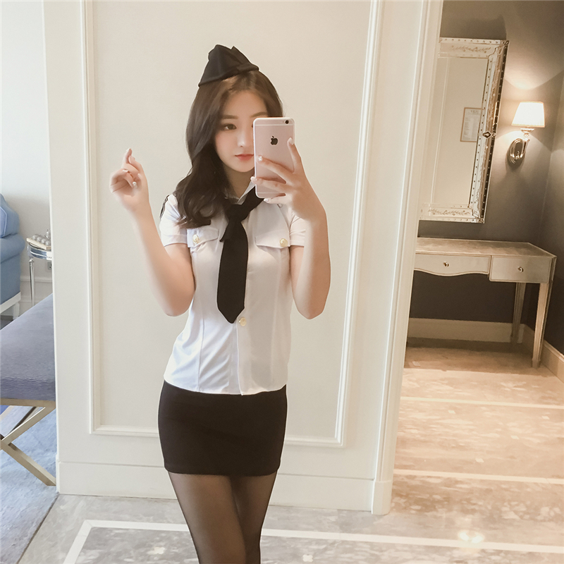 Female police uniform suit open crotch silk stocking female police uniform suit (with tie hat)