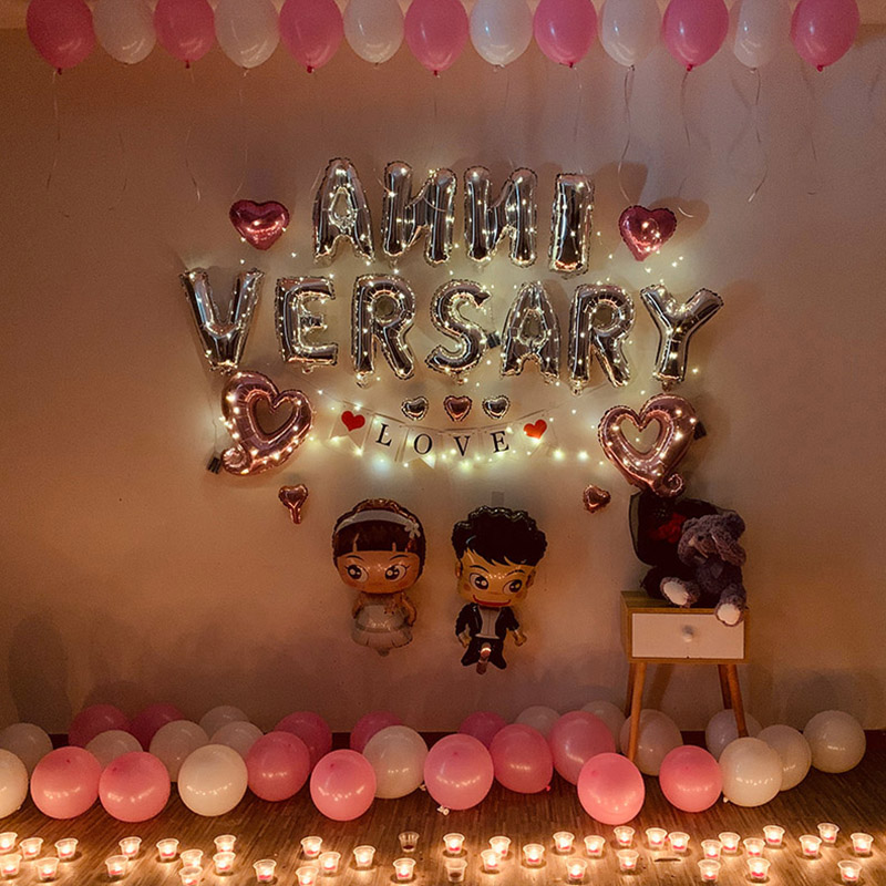 Rose Gold Slowly Love Anniversaries Black & White Balloon Memorial Package White Blue Memorial Package Line Lamp (3 Meters Line Light 3 Strings) Dolphin Memorial Package Golden Wine Bottle Anniversary Package Golden Anniversary Package