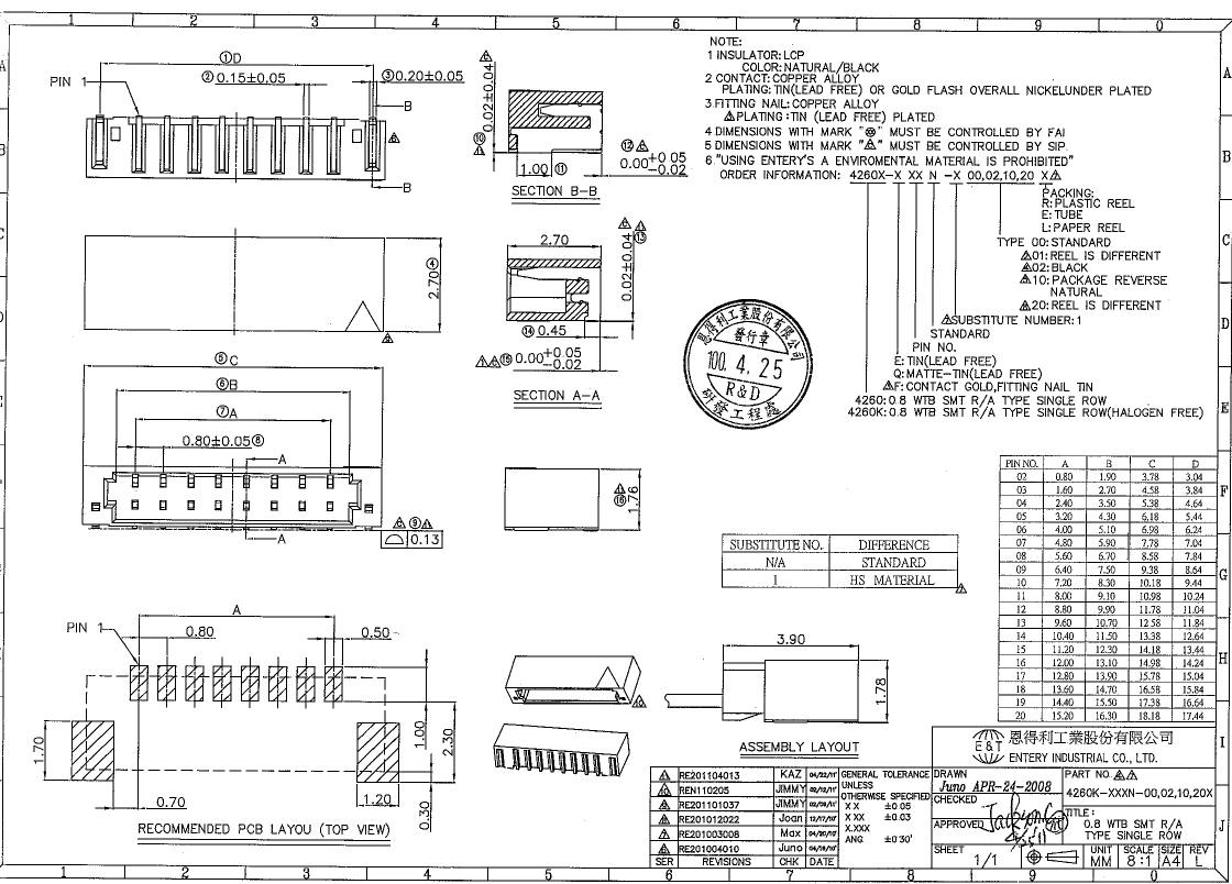 ENTERY connector 4260K-F10N-00L SUR0 8 10P Piercing Sleeper 20 Kups-Taobao