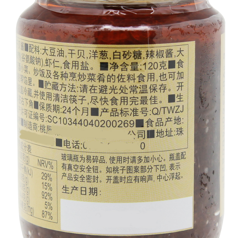 Peach House Jam Vegetable Peach House Dry Bay Jam Selected Yao Post Silk Seafood Sauce 120g ready-to-eat small dish of wine