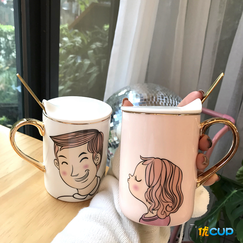 Sketching couple with lid Mark cup guys gold sketching couple with lid mark cup girls gold sketching couple with lid mark cup pair of golden couple cups King queen country