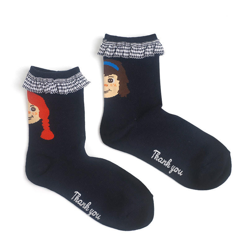 Breaking cat asymmetrical cloth Puppets Sox Children South Korea lace midbarrel socks cute Academy windy girls cotton socks