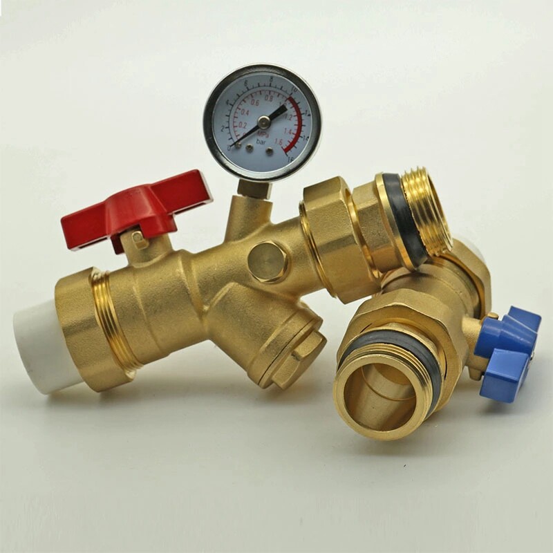 Floor heating water divider sleeve valve all copper PPR32 water inlet filter return water live ball valve 1 inch tooth pressure gauge