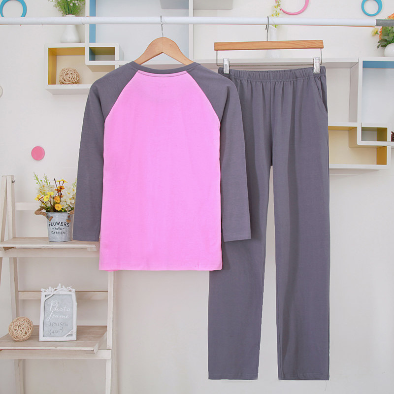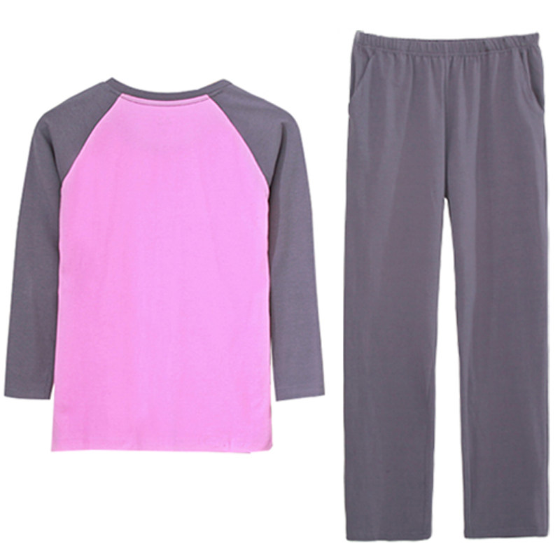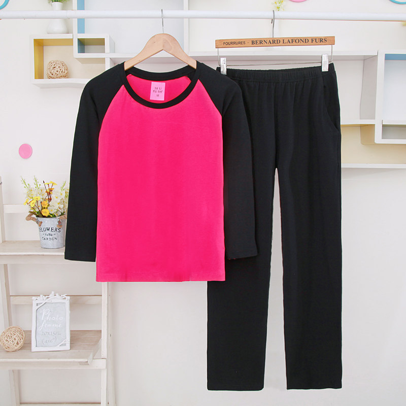 Dark blue light gray raglan long sleeves Dark blue trousers purple and white raglan long sleeves Purple trousers dark gray pink raglan long sleeves Dark gray trousers Black rose red raglan long sleeves Black trousers