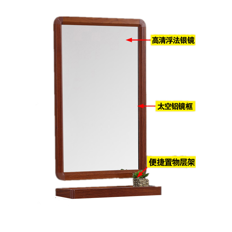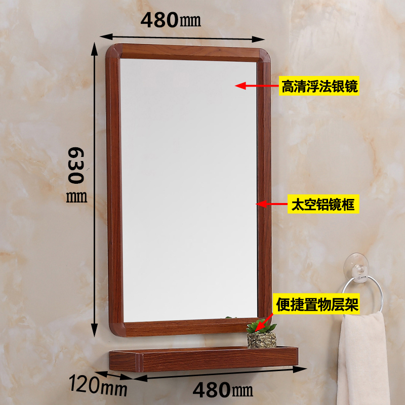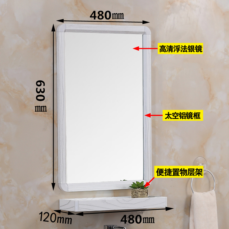 Free Punch Bathroom Mirror Makeup Room HD Mirror Wall-mounted Wrapping wall with frame Toilet Makeup Mirror with shelf