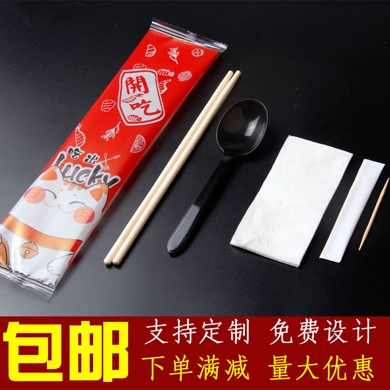 300 sets of chopsticks four sets of pure Kraft paper black spoon 300 sets of chopsticks four sets of auspicious Kraft paper 1000 sets 20cm twin chopsticks without spoon eat good OPP1000 set 19 5c