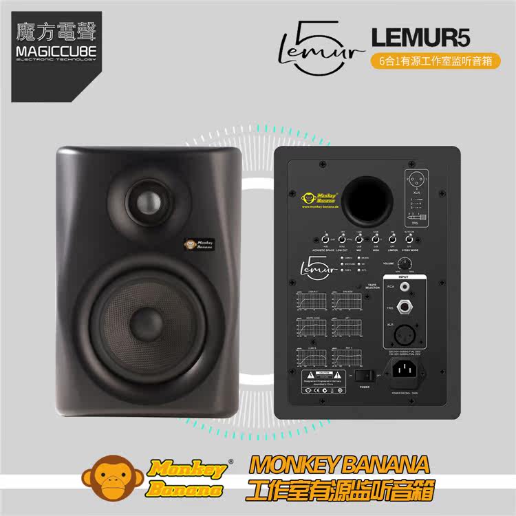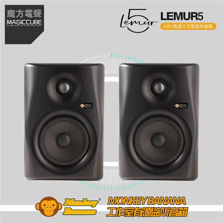 Banana monkey Monkey Banana LEMUR 5 DJ listening to sound box 5 inch music to make near field sound