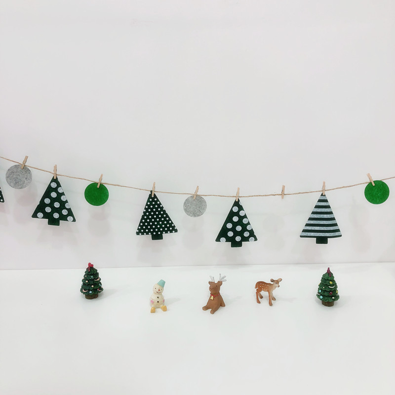 Christmas Clips Color Flags (Delivered Hemp Rope Wood Clips) Black Gold Christmas Small Pine Tree Flowers Ring Lamp Strings (Pure Handmade) Elk Deer Clips Colorful Flag Christmas Hanging Accessories (7 Groups One)