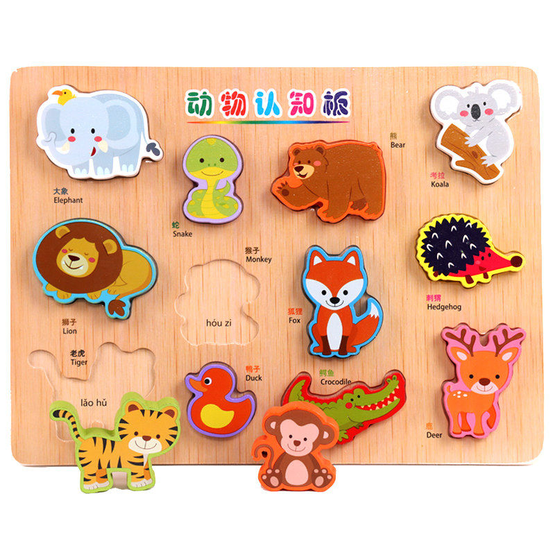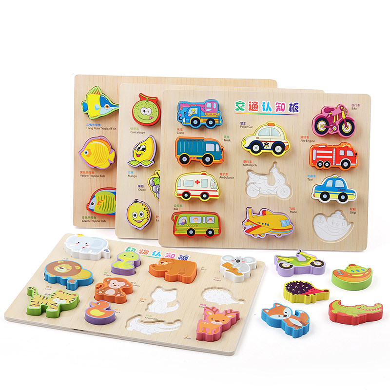 Wooden children hand grip board shape cognitive baby puzzle puzzle early teaching Yi toys 1 - 2 - 3 years old