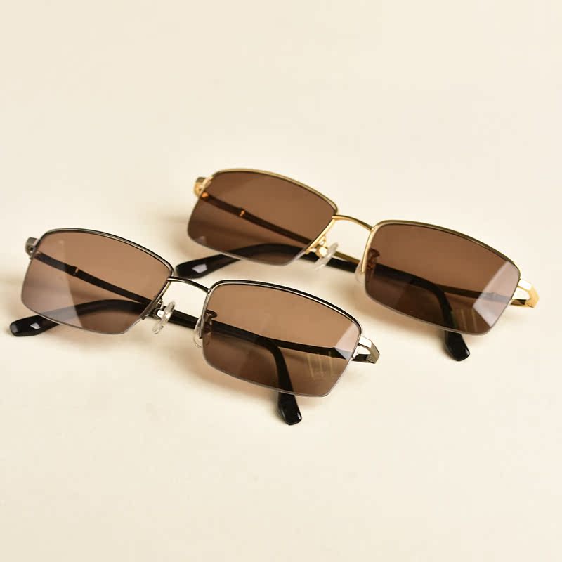 Gold frame (light brown lenses) Gold frame (medium brown lenses) Gold frame (dark brown lenses) Grey frame (light brown lenses) Grey frame (medium brown lenses)