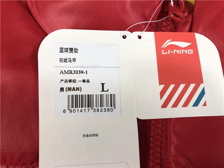 Rare Li Ning sponsors domestic track and field national team athletes version of the national flag red men's down vest vest