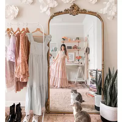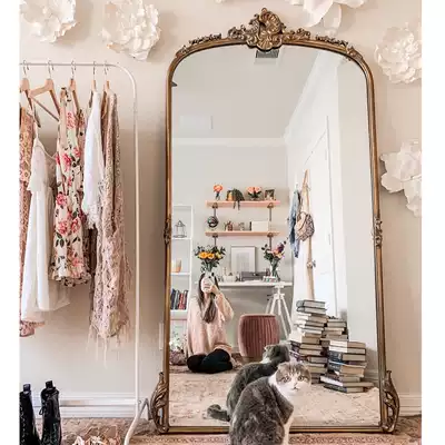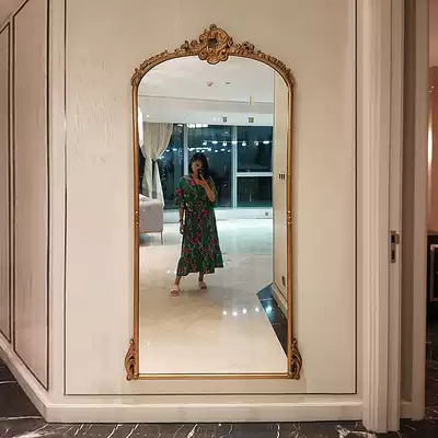 European style vintage carved floor full-length mirror Golden old clothing store large mirror model room cloakroom full-length mirror