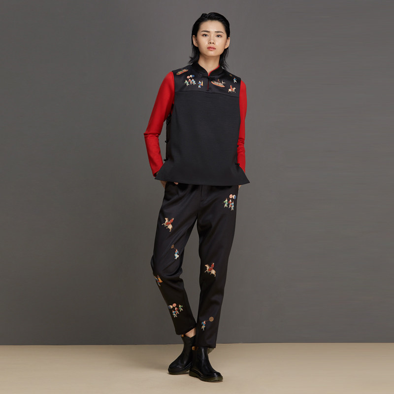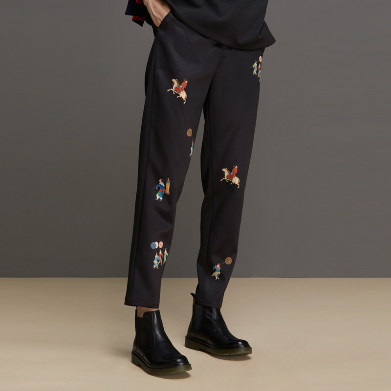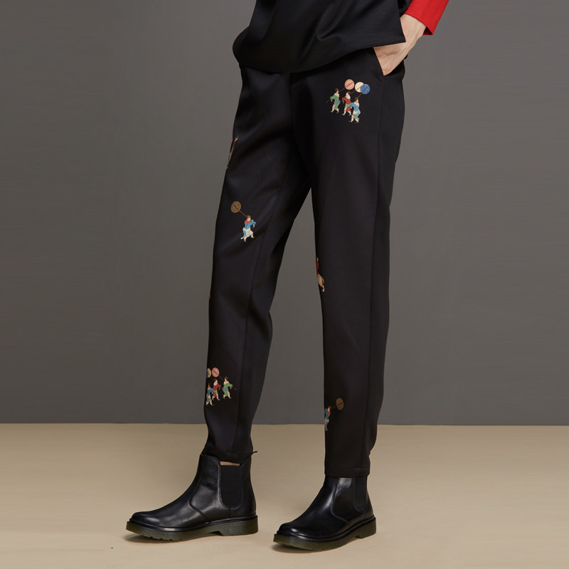 (Mustard Original) Tour China Wind 90% Little footed casual pants print Design Retro Leg Kharen Pants