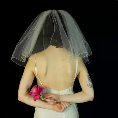 Bridal veil Korean double-layer plain yarn covering short version wedding veil travel veil simple puffy wedding headdress