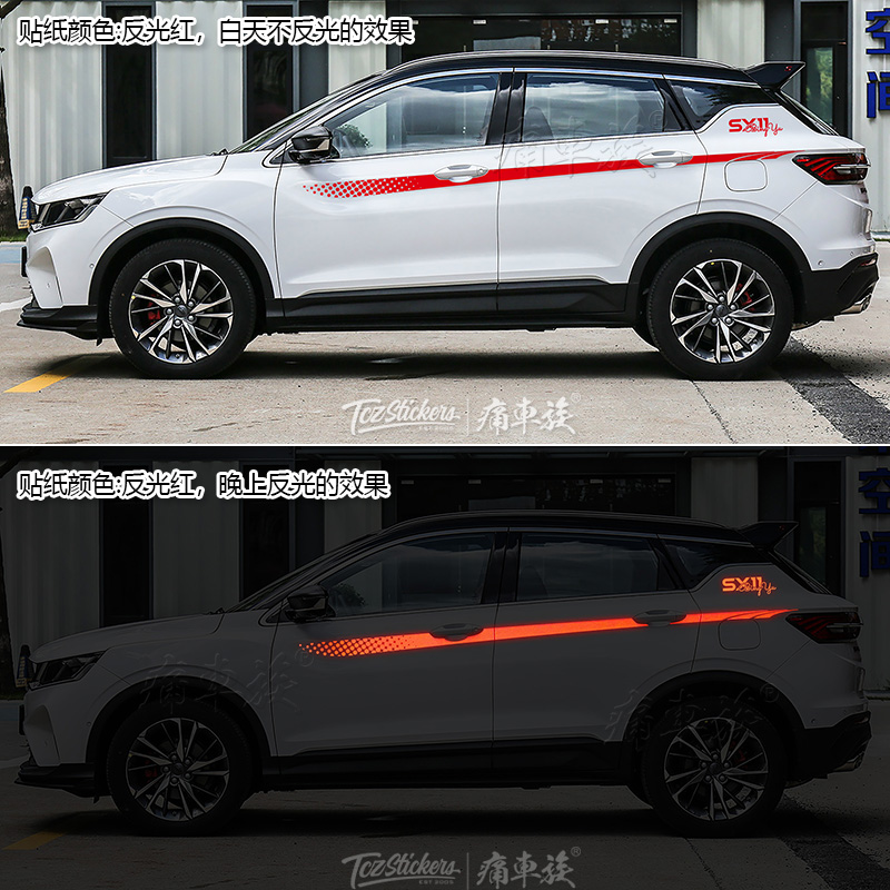 Suitable for geely Euretto carouflage with colourful strips for pulling flowers, the more bodywork color and waist line decoration retrofitting car stickers