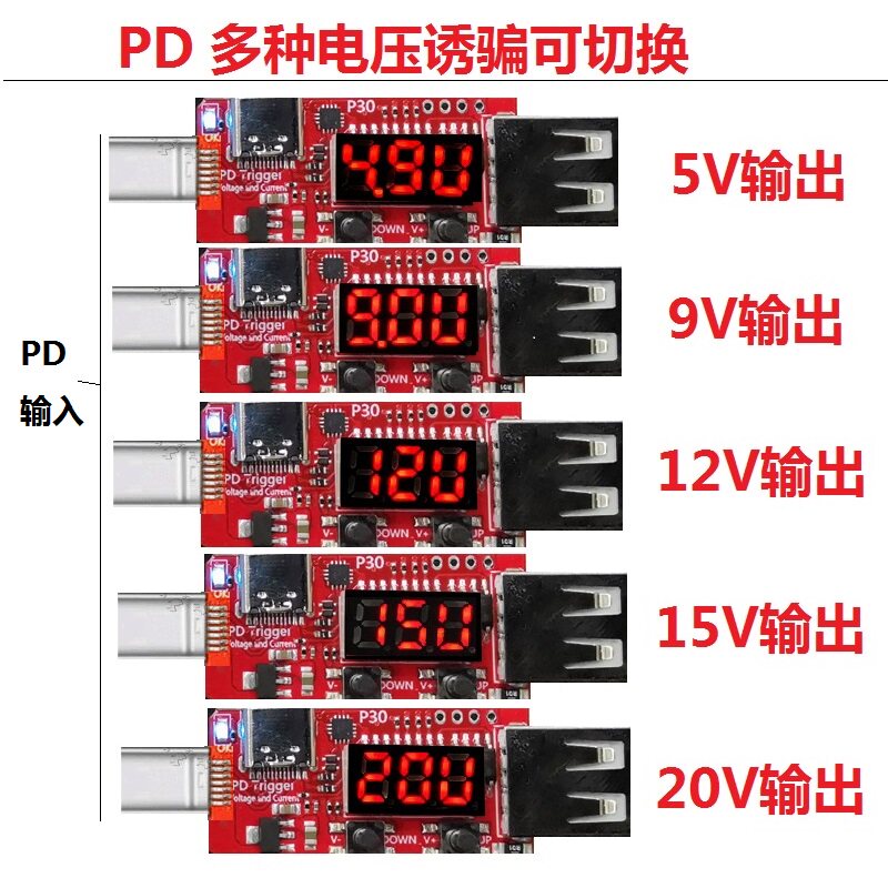 PD5-20V voltage trigger (with display) PD decoter C revolution C mother button subsection no display PD Booking machine C mother-to-USB mother mouth No display PD Booking device 45
