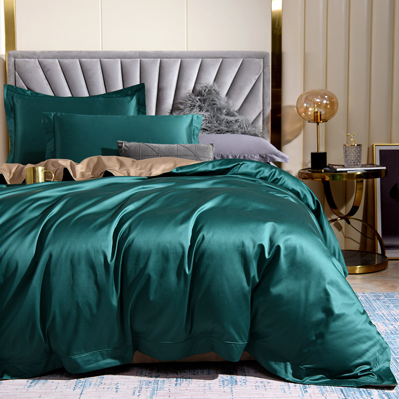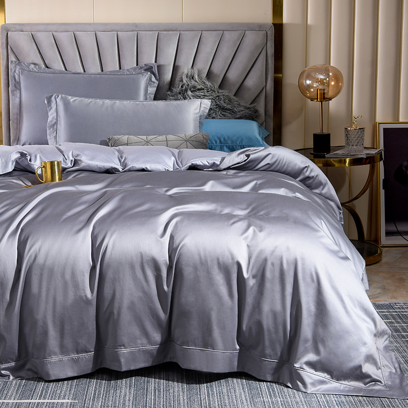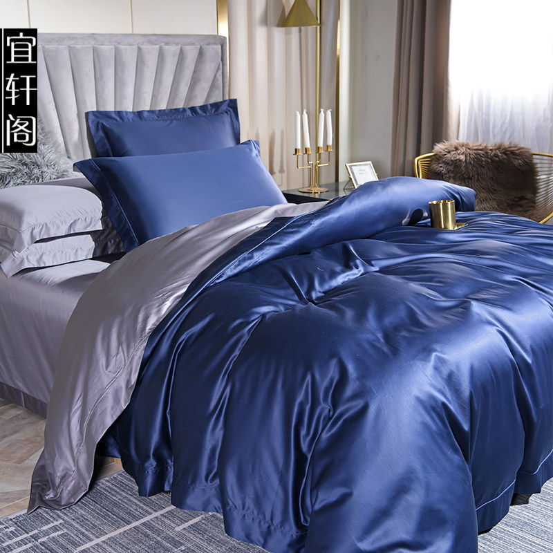 High-end cotton 150-count horse cotton long-staple cotton satin four-piece set solid color double spell plain color hotel style set