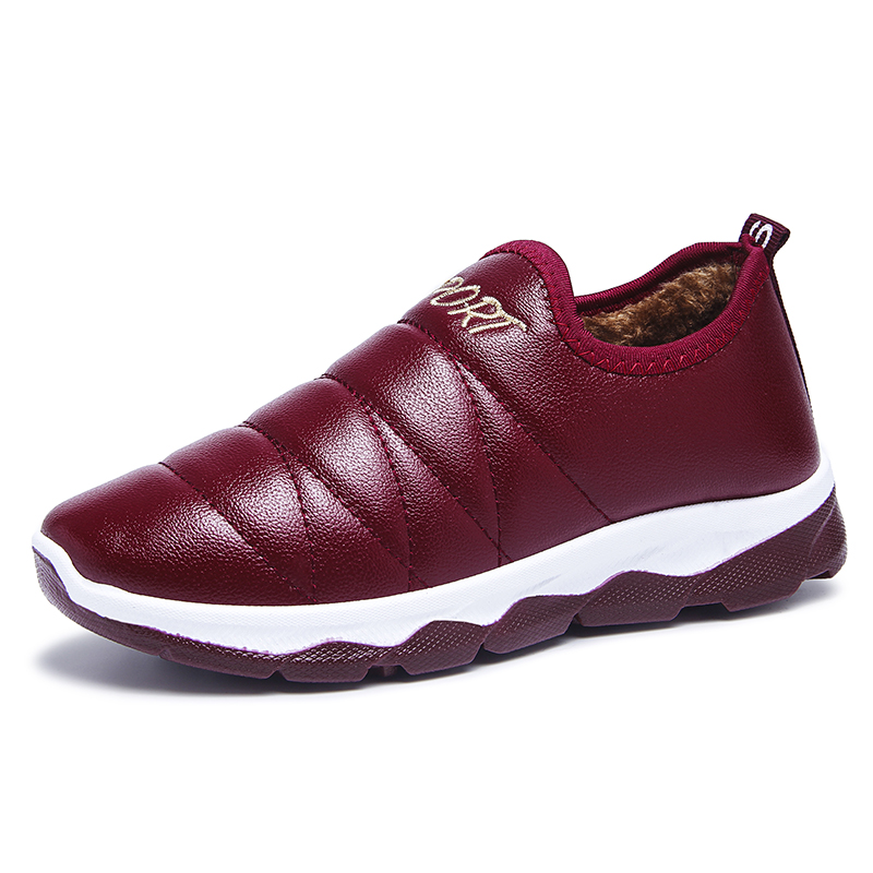 Winter thermal PU waterproof women cotton shoes Old Beijing flat bottom non-slip Mama shoes gush thickened snowy boots working shoes