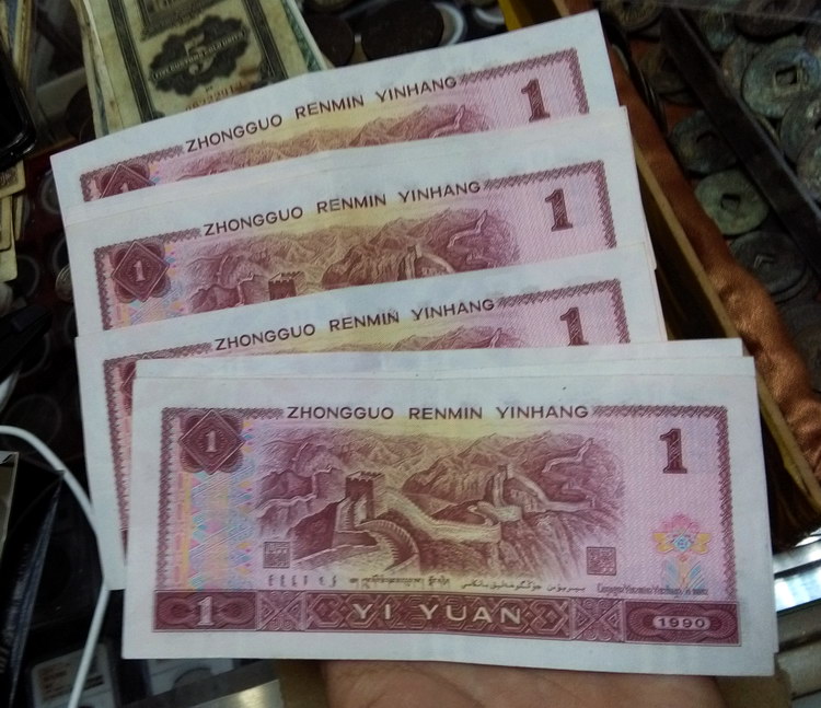 The 1990 1 yuan note with the folding mark is the fourth set of RMB one yuan old version of the old version coin 80% New fidelity