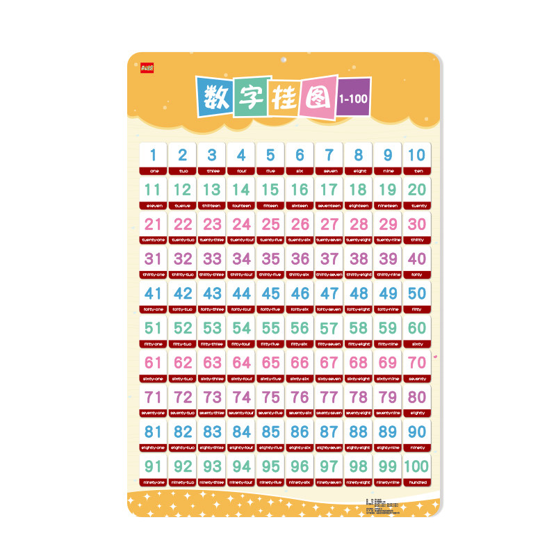 Happy baby pre-school children's numbers 1-100 wall chart Early education enlightenment cognition Children learn numbers silent