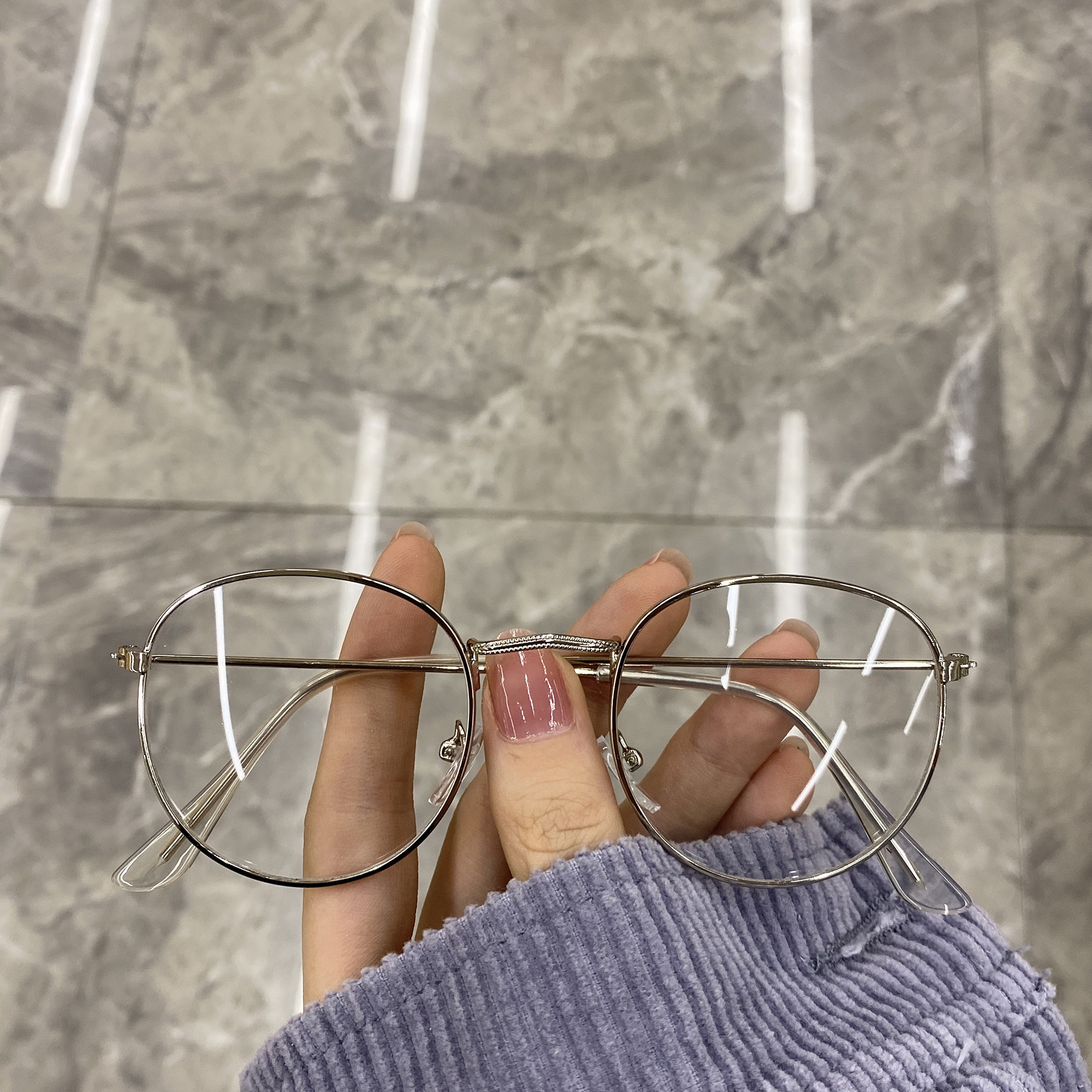 ins super fire glasses female round face Korean version tide Harajuku wind retro personality net red makeup Ultra-light flat light glasses