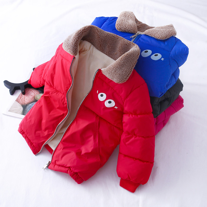 Children laid cotton jacket girl 2022 new Korean version of the Korean version boy cotton padded jacket with velvet thickened warm baby down cotton clothing