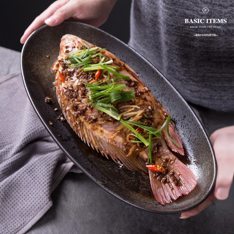 Day Style Creativity Home Cutlery Ceramic Plates Oval Large kilns Fish Pan Day-Style Steamed Fish Grilled Fish Dishes