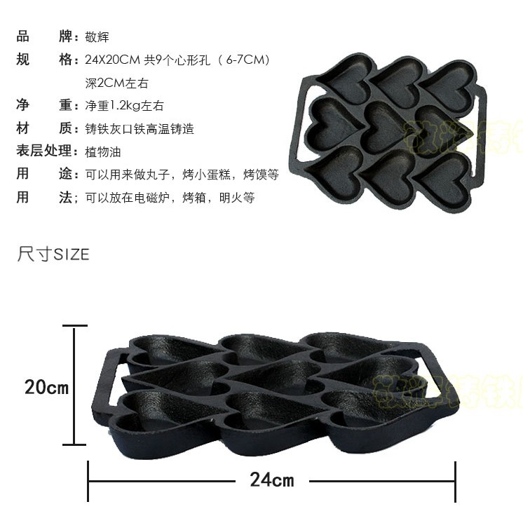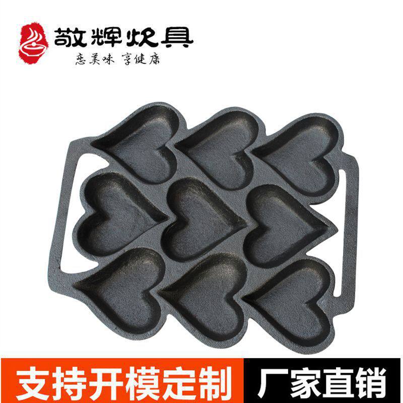 Jinghui Cast Iron 9 hole heart - shaped cake DIY mold without coating healthy export original single oven open flame