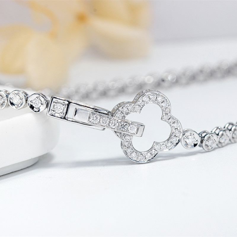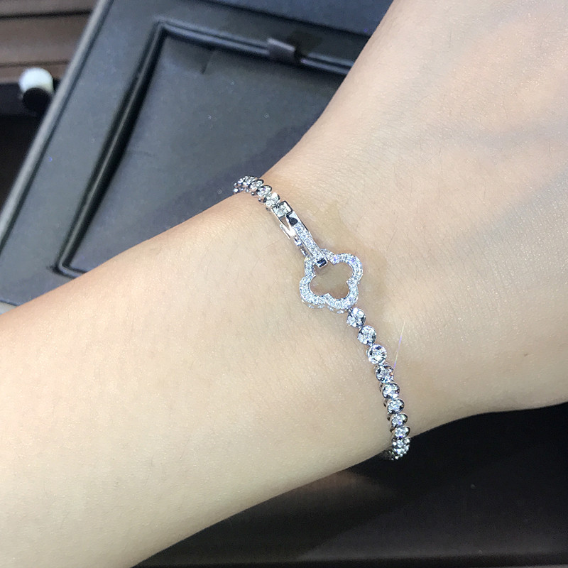 Diamond Handmade Bracelet Real Diamond 18k Gold Rose Gold Color Gold Four Leaves Grass Full Drill Hand Refining