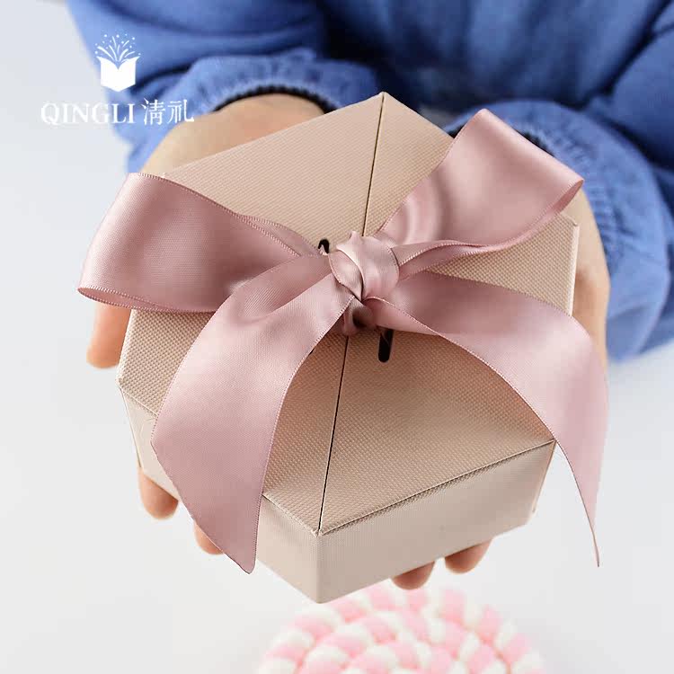 Mini hexagonal gift box delicate jewelry lipstick eternal flower gift packaging simple INS birthday box