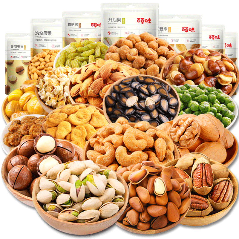 The grass-flavoured nut pack snack combination mixes whole boxes of dried fruit bulk packages to buy annual snacks