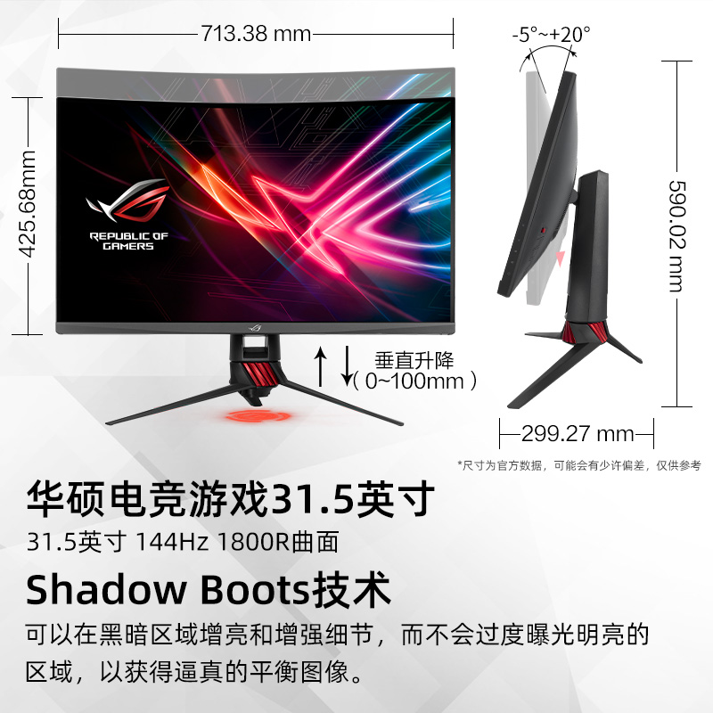 Asus Asus player country XG32VQ XG32VQR flagship store desktop computer monitor 31 5 inch 2k e-sports curved notebook external 144Hz Display