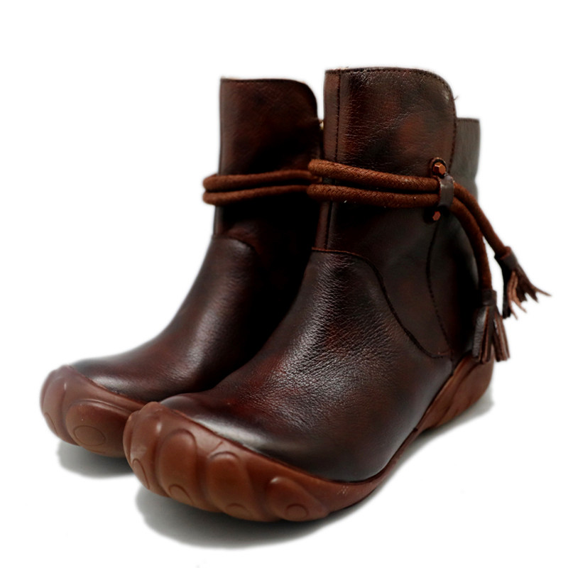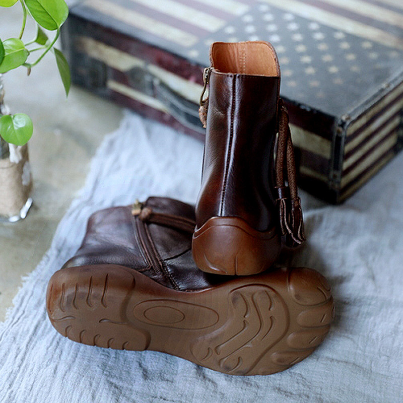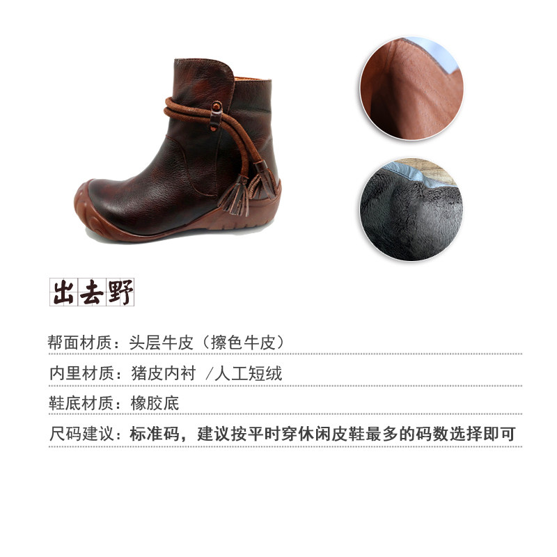 Detox home go wild cowhide short boots women's retro leather women's boots wedge heel handmade women's shoes single boots autumn new style