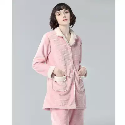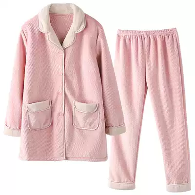 Special clearance~Pajamas women's winter long-sleeved coral velvet padded thickened warm simple home service suit