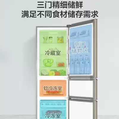 Haier three door refrigerator small household refrigeration refrigeration energy saving silent dormitory rental refrigerator 218L 216 liters