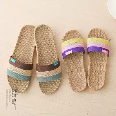 Summer home linen slippers Women summer 2021 new indoor home lovers non-slip floor sandslippers men