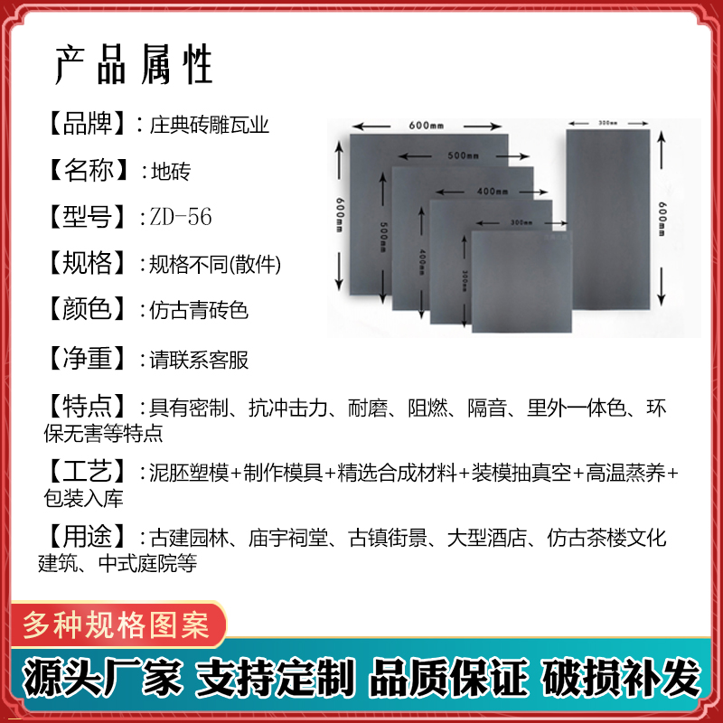 Zhuangdian green brick antique floor tile clay brick paving floor tile square brick small brick ancient building surface brick Beijing brick courtyard city wall brick