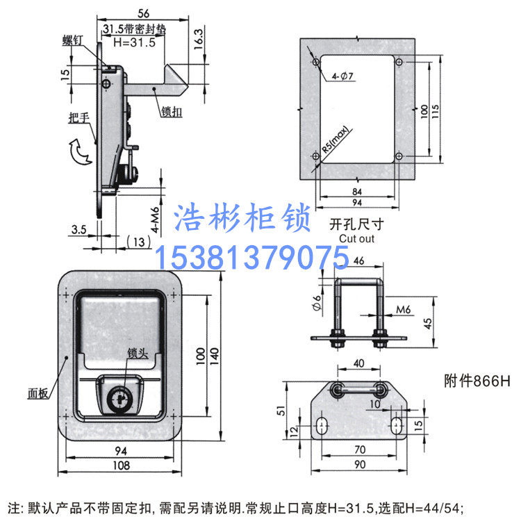 MS866-5S stainless steel screw hole type buckle plate U type accessory MS866-5S stainless steel stud type MS866-5 black