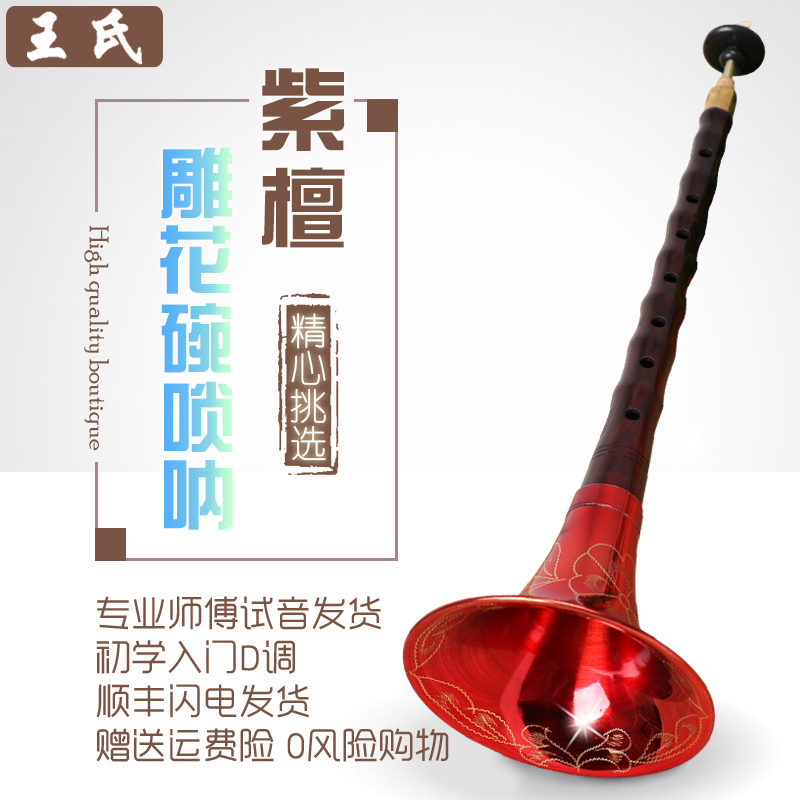 Tianjin Wang's professional playing purple sandalwood Percussion Instrument D Tune Full Entrance Suona Adult Size Number D Tune Suona