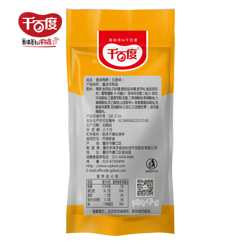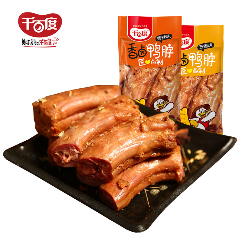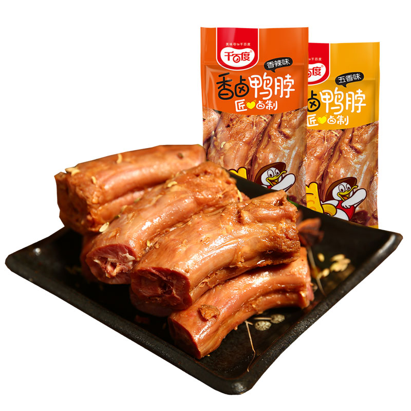 Thousands of Baidu duck spicy cooked food Leisure snacks snacks Bulk small packaging fragrant braised duck neck 500g snacks