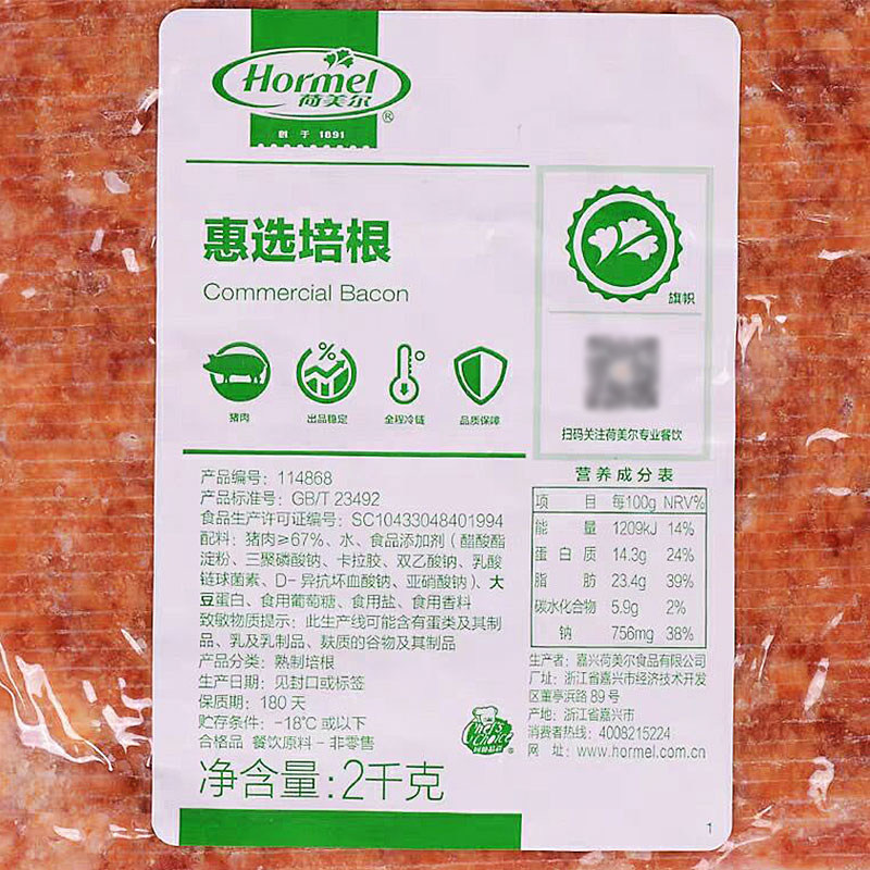 Hormel Huixuan bacon 2kg original value-for-money bacon meat slices home breakfast shredded pizza hand-caught cake barbecue commercial