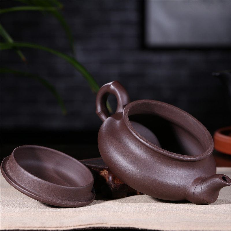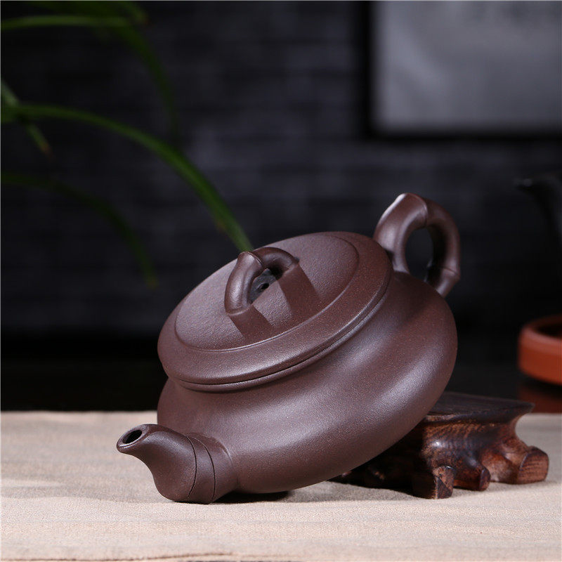 Original mine purple clay flat belly pot Handmade purple sand pot Bamboo tea tea set Kung Fu tea set Custom famous teapot