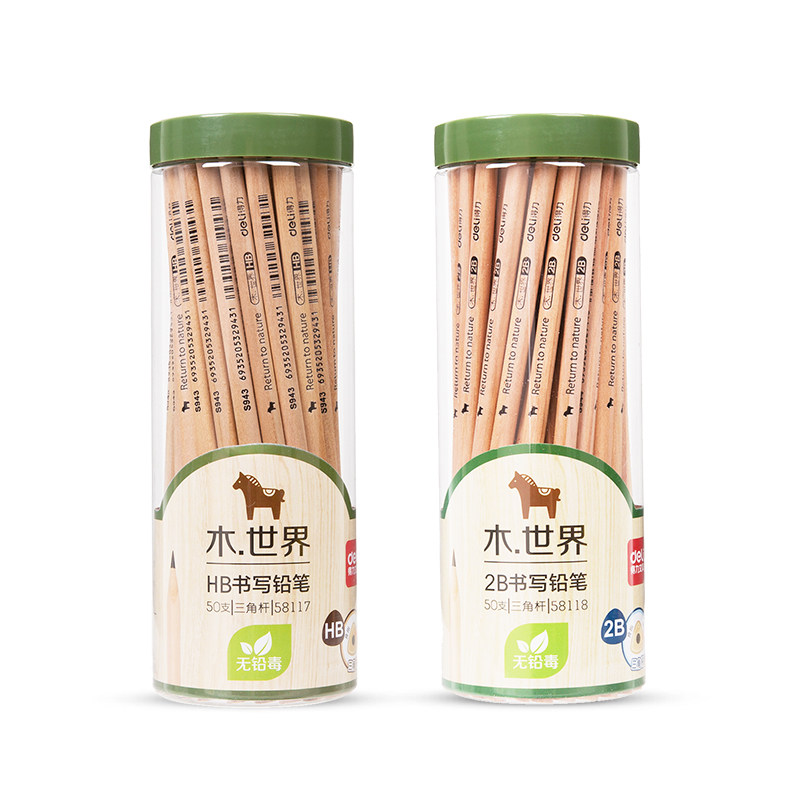 Able 58117 Linden Wood Softening Pen Rod Students Writing Stationery Triangle Pole HB 2B Barrel Mounted Pencil Environmental Protection 50