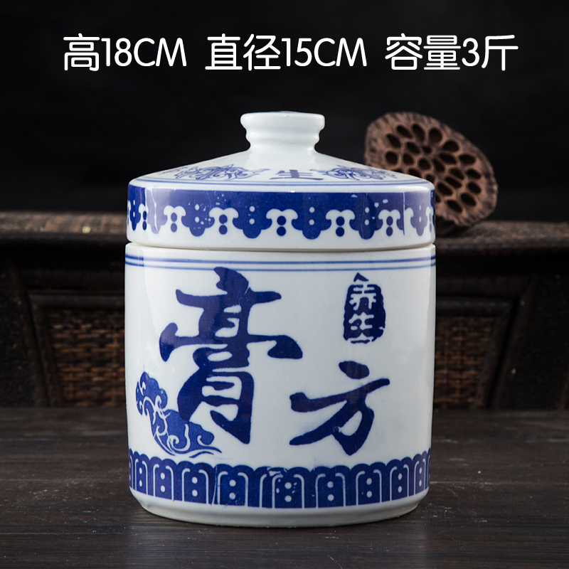 Customized direct sales Jingdezhen ceramic blue and white paste square jar Chinese herbal medicine storage jar small honey jar medicine powder jar