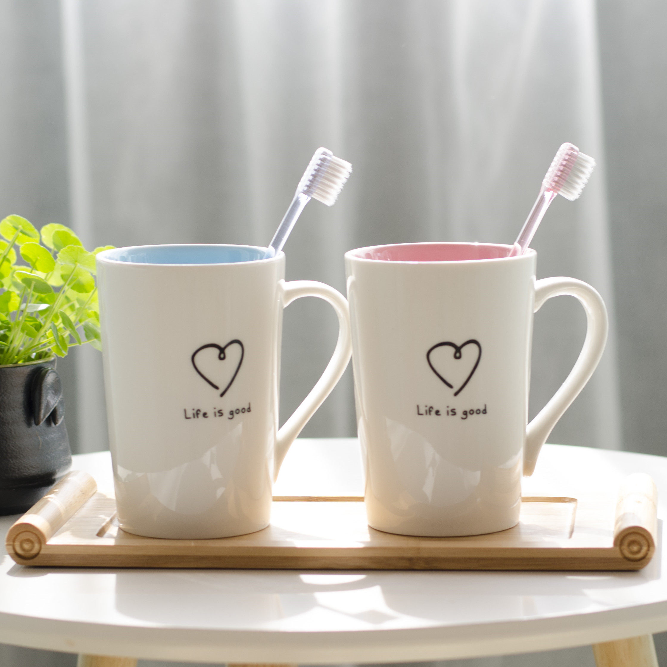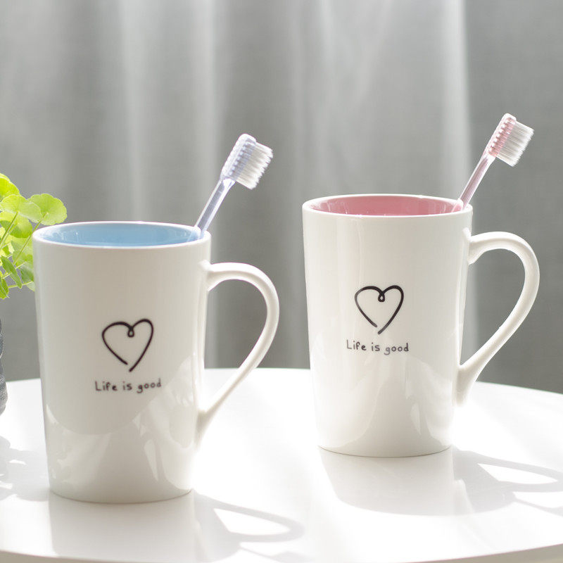 Ceramic couple brushing cup set simple mouthwash cup men and women toothbrush cup household pair of cute tooth cup mouth cup