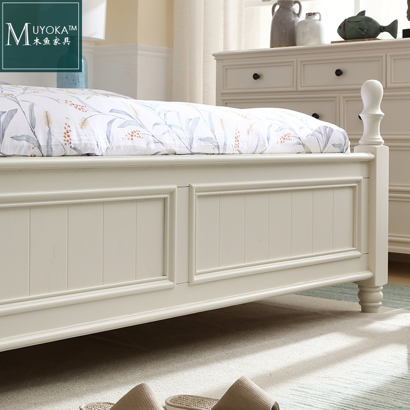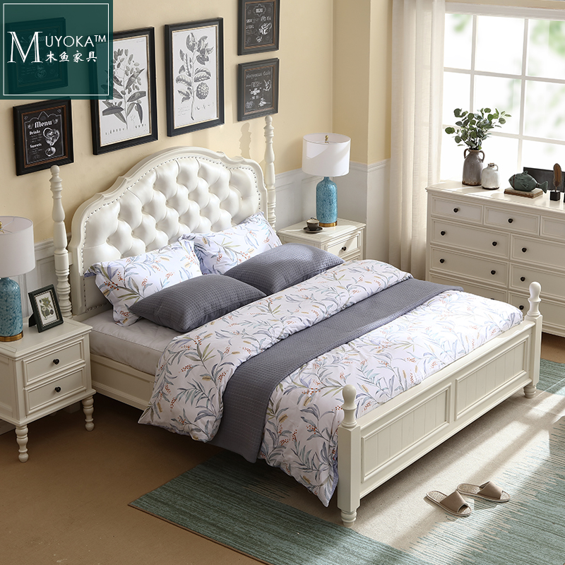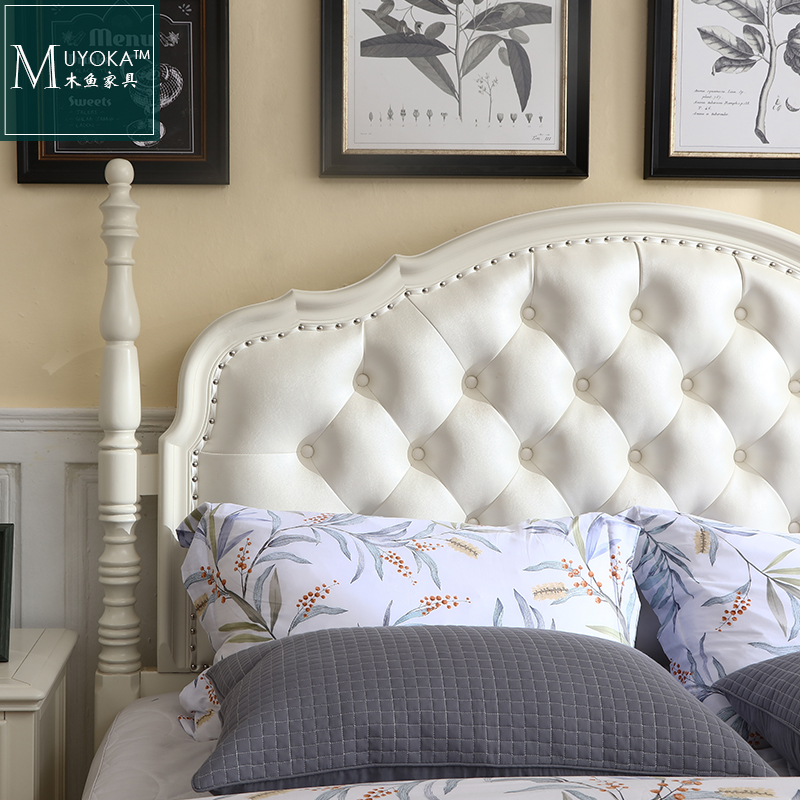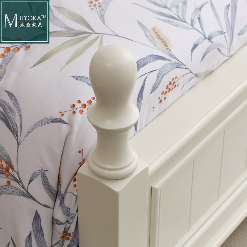 American countryside peach blossom heart wood soft bunk bed Roman column headboard retro white bed-Taobao