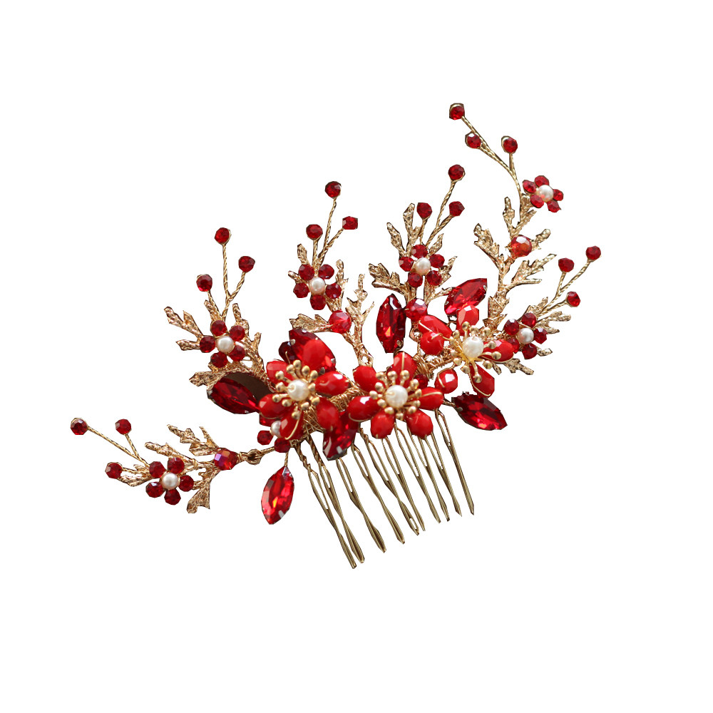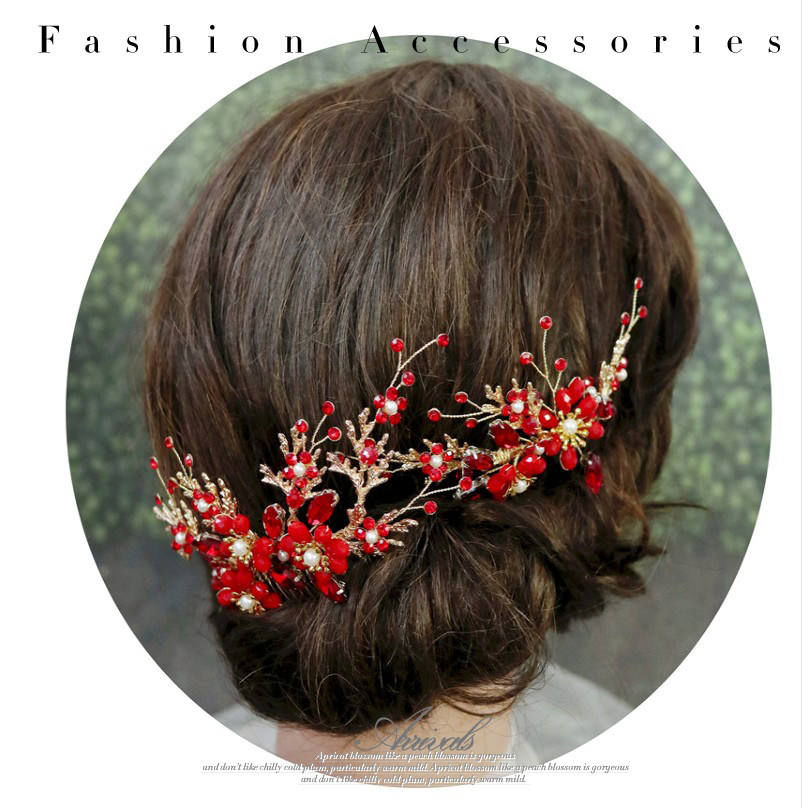 Gorgeous bridal headdress comb red knot wedding dress toast clothing New Year's Eve party host accessories