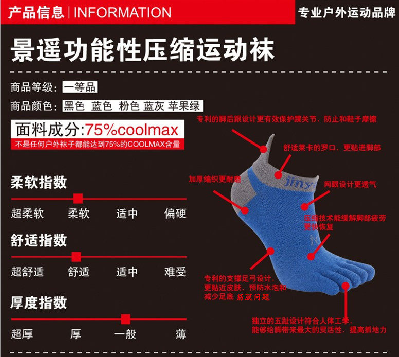 Jing Remote Five Finger Socks Marathon Running Socks Compression CoOLMAX Sports Speed Dry Socks Waterproof Foam for men and women